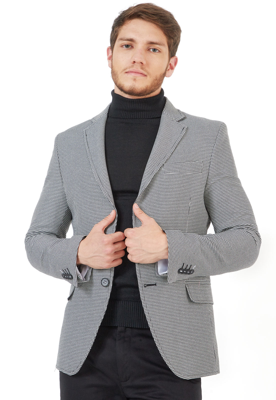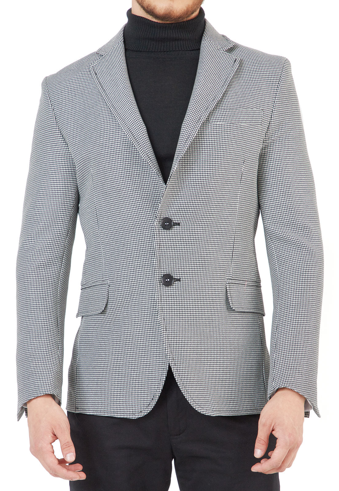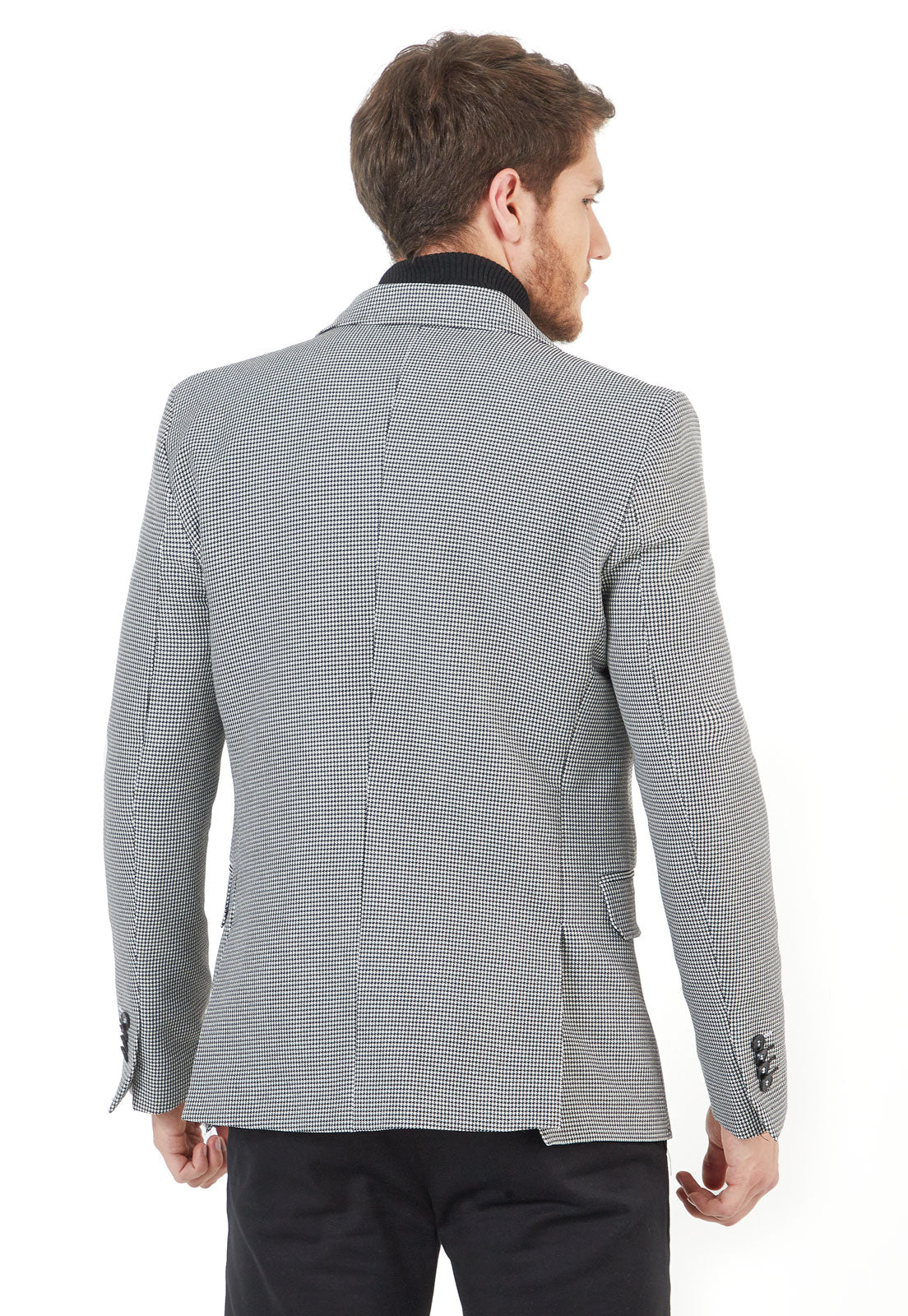 Blazer gallineto negro con blanco con pespunte slim fit