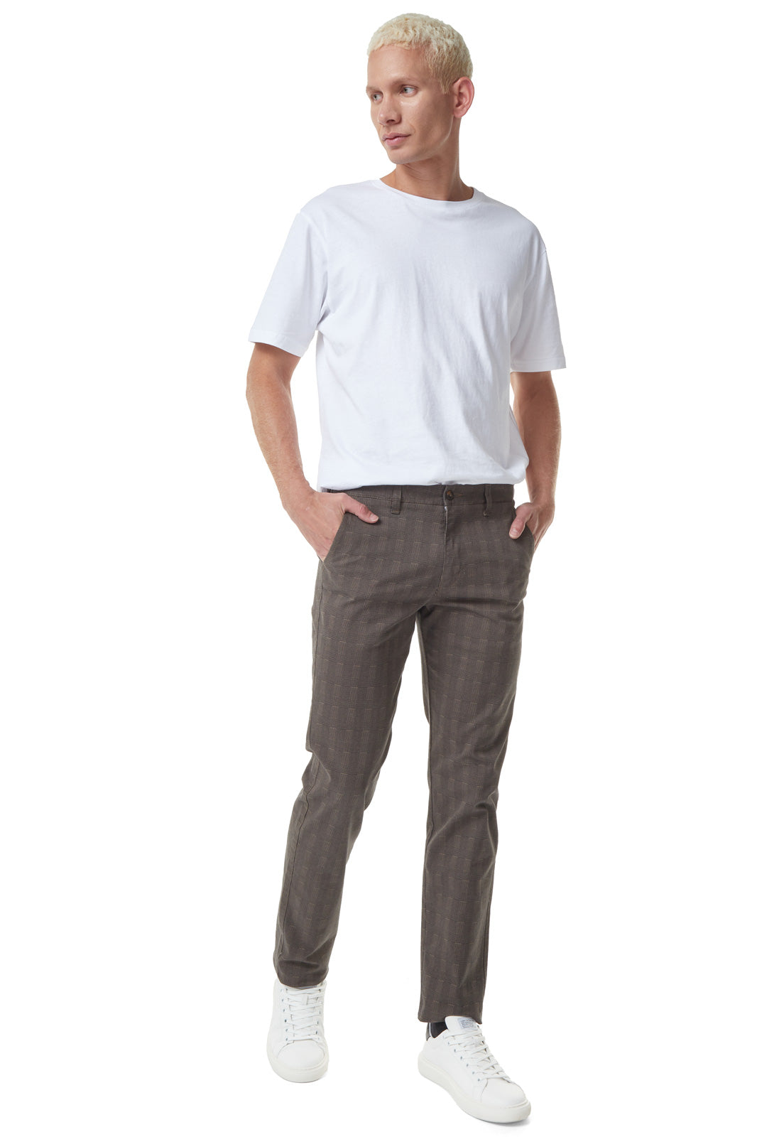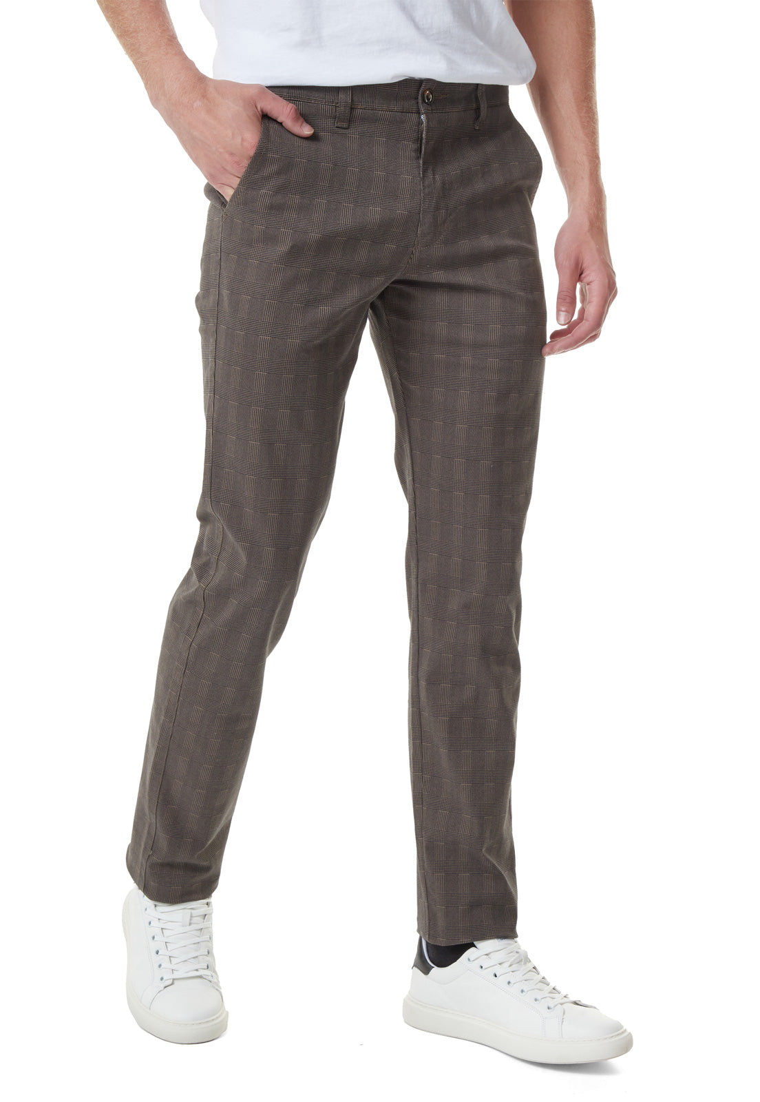 Pantalón dril a cuadros cafe