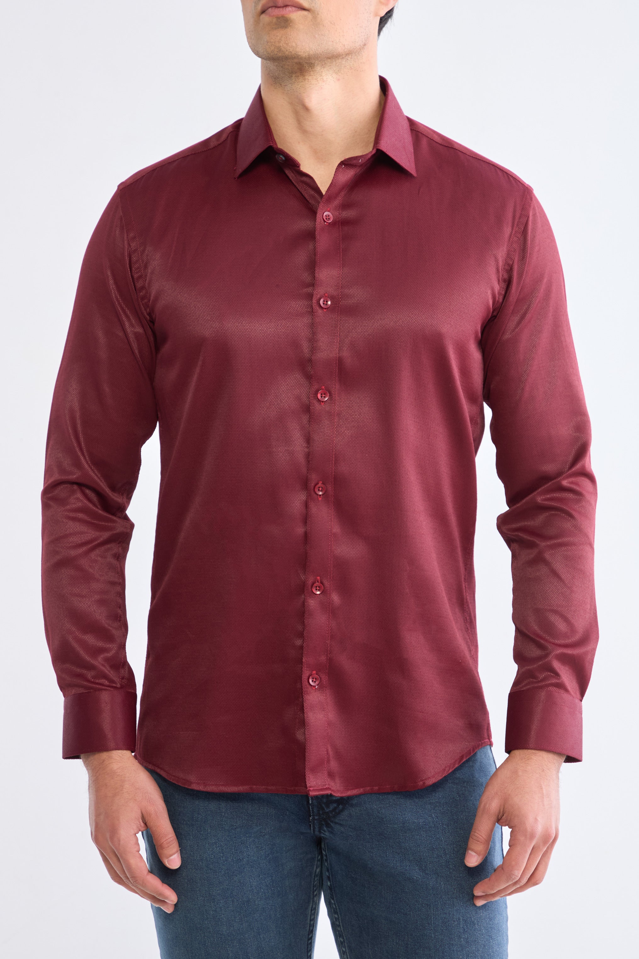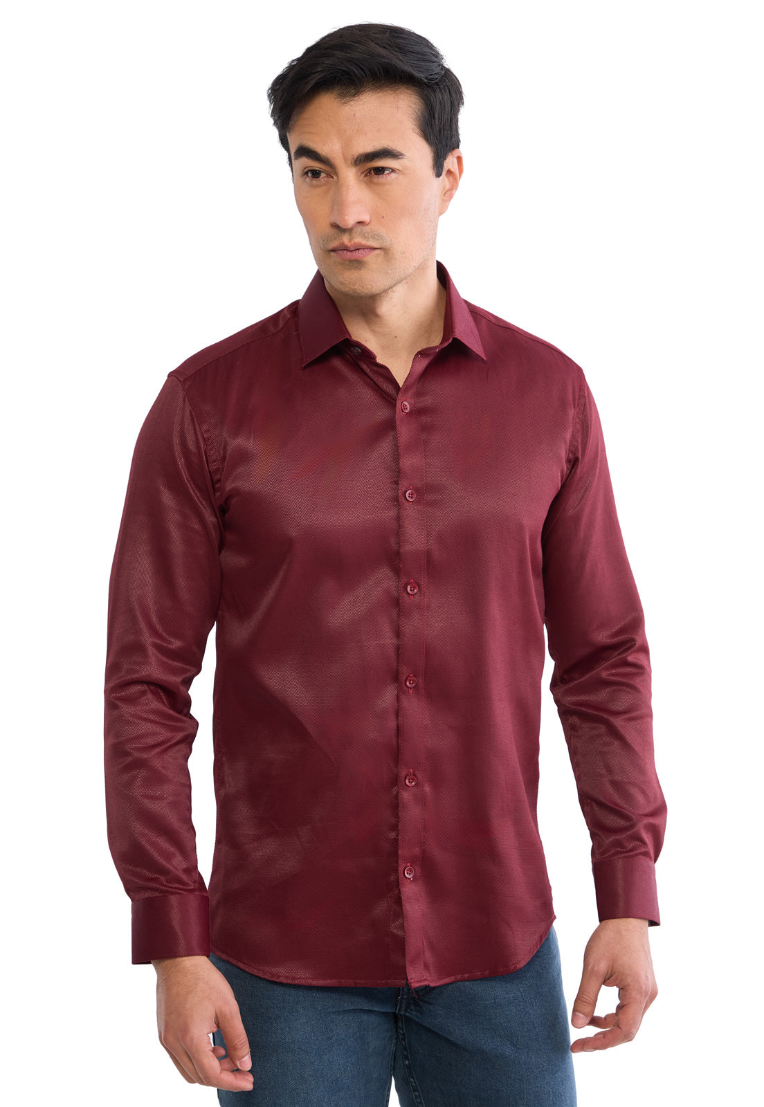 Camisa manga larga vinotinto con textura