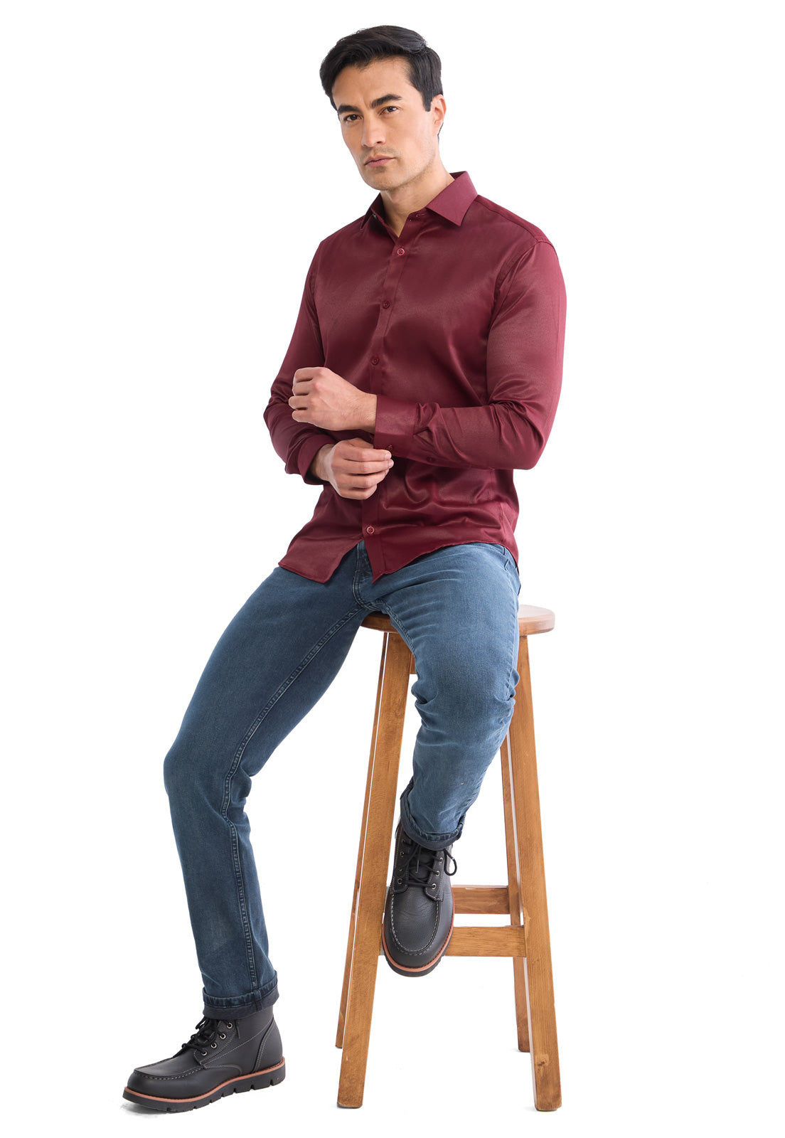 Nuestra camisa vinotinto con textura es perfecta para darle un toque único y elegante a la hora de vestir, contando con cuello camisero, bolsillo en el pecho de la parte izquierda y un sistema de cierre con botones. Es la opción adecuada gracias a su color neutro. Confeccionado por manos colombianas.