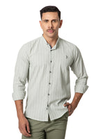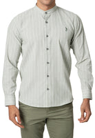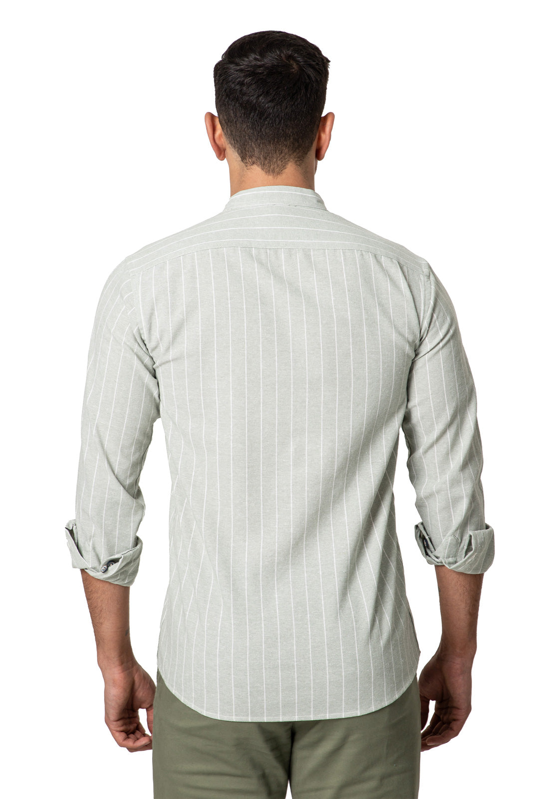 Camisa en Lino verde cuello neru a rayas