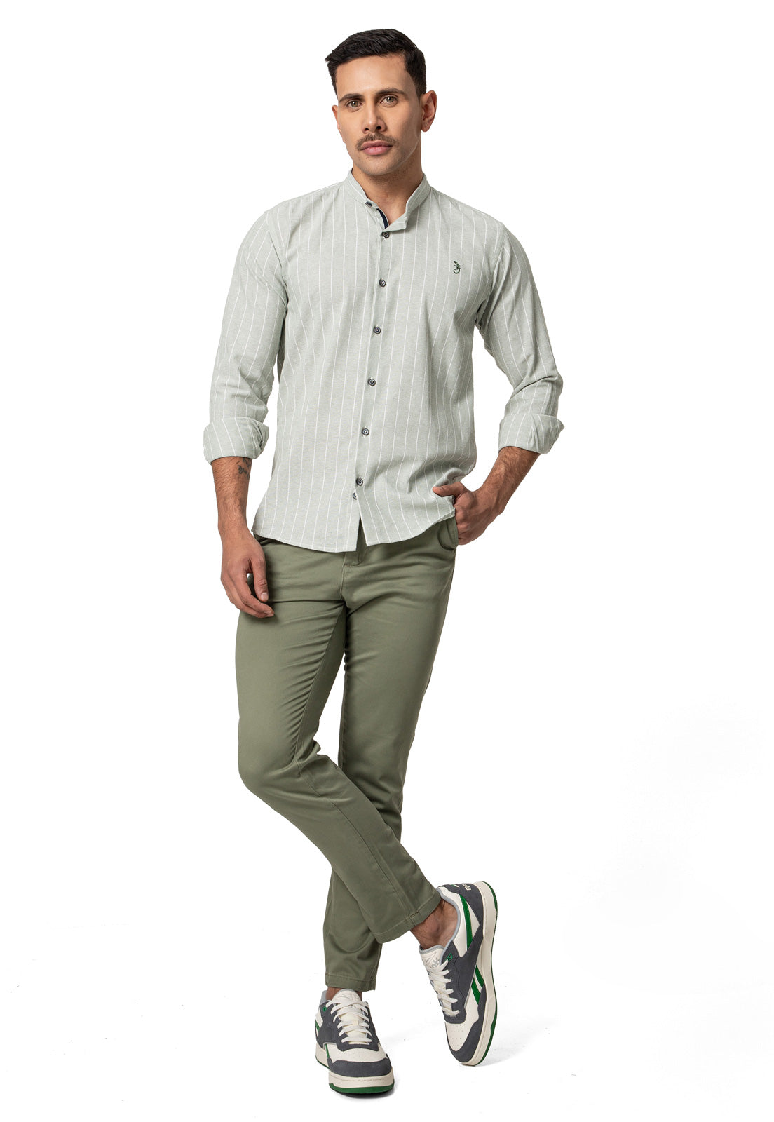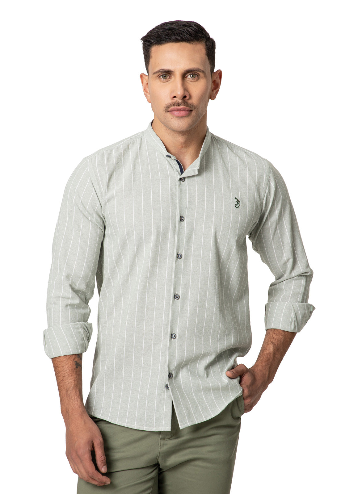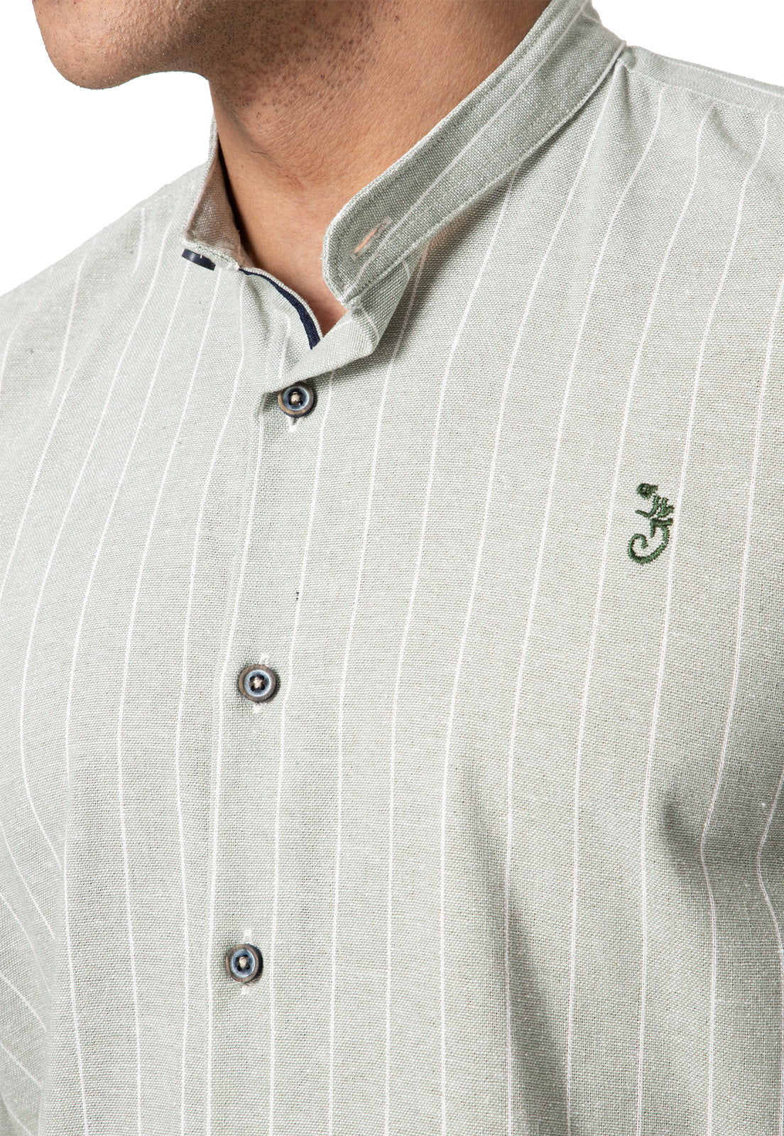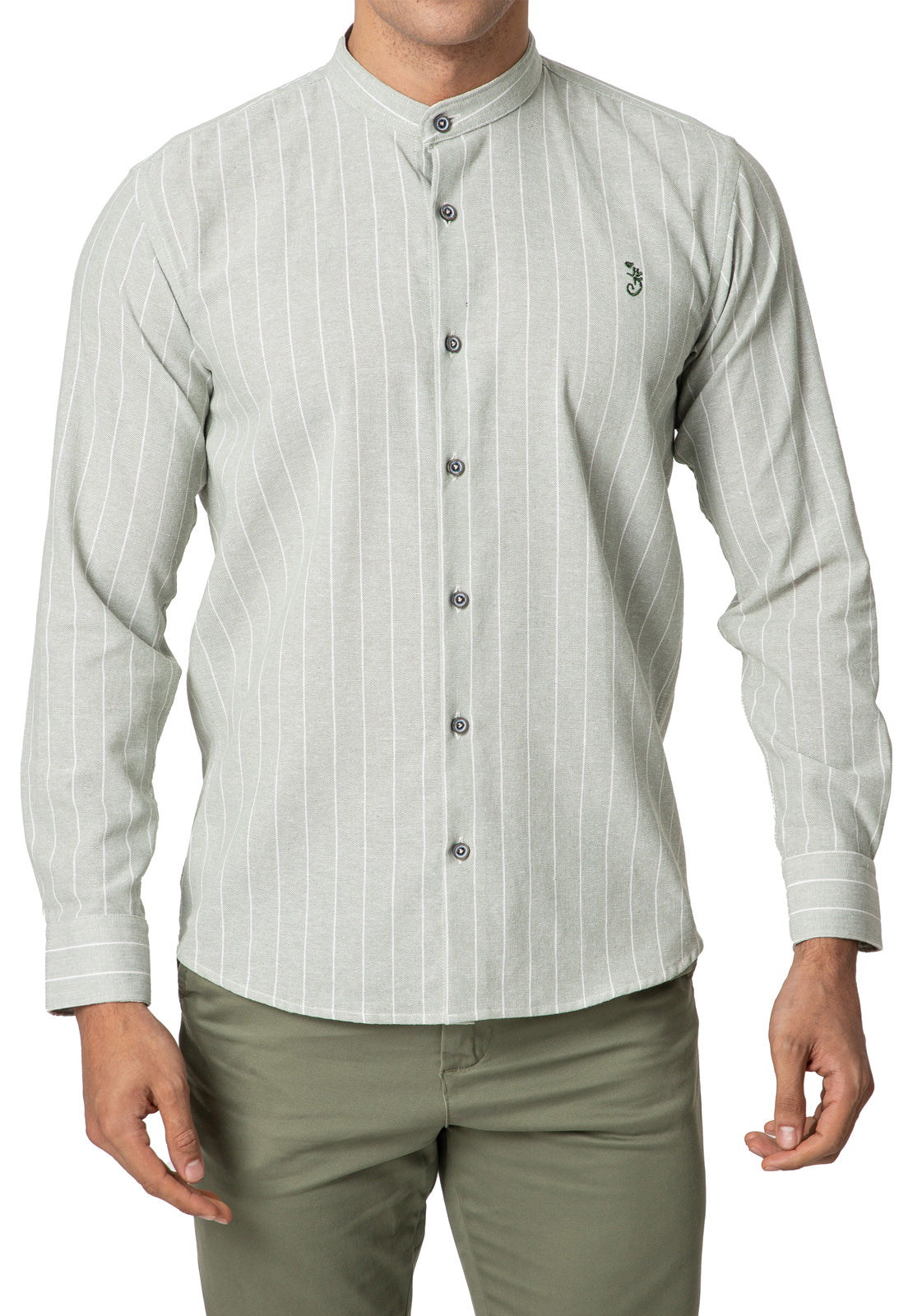 El diseño de esta camisa en lino verde con rayas blancas da un toque único y cómodo a tu outfit, cuenta con cuello nerú y sistema de cierre con botones, lo cual lo hace perfecto para uso en ocaciones formales e informales. Diseñado con materiales de alta calidad, ofreciendo un toque exclusivo de moda y funcionabilidad. Hecho por manos colombianas.