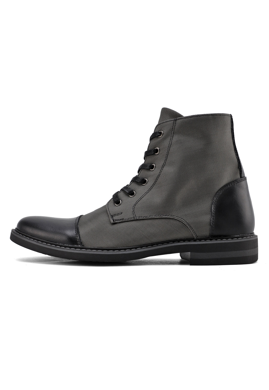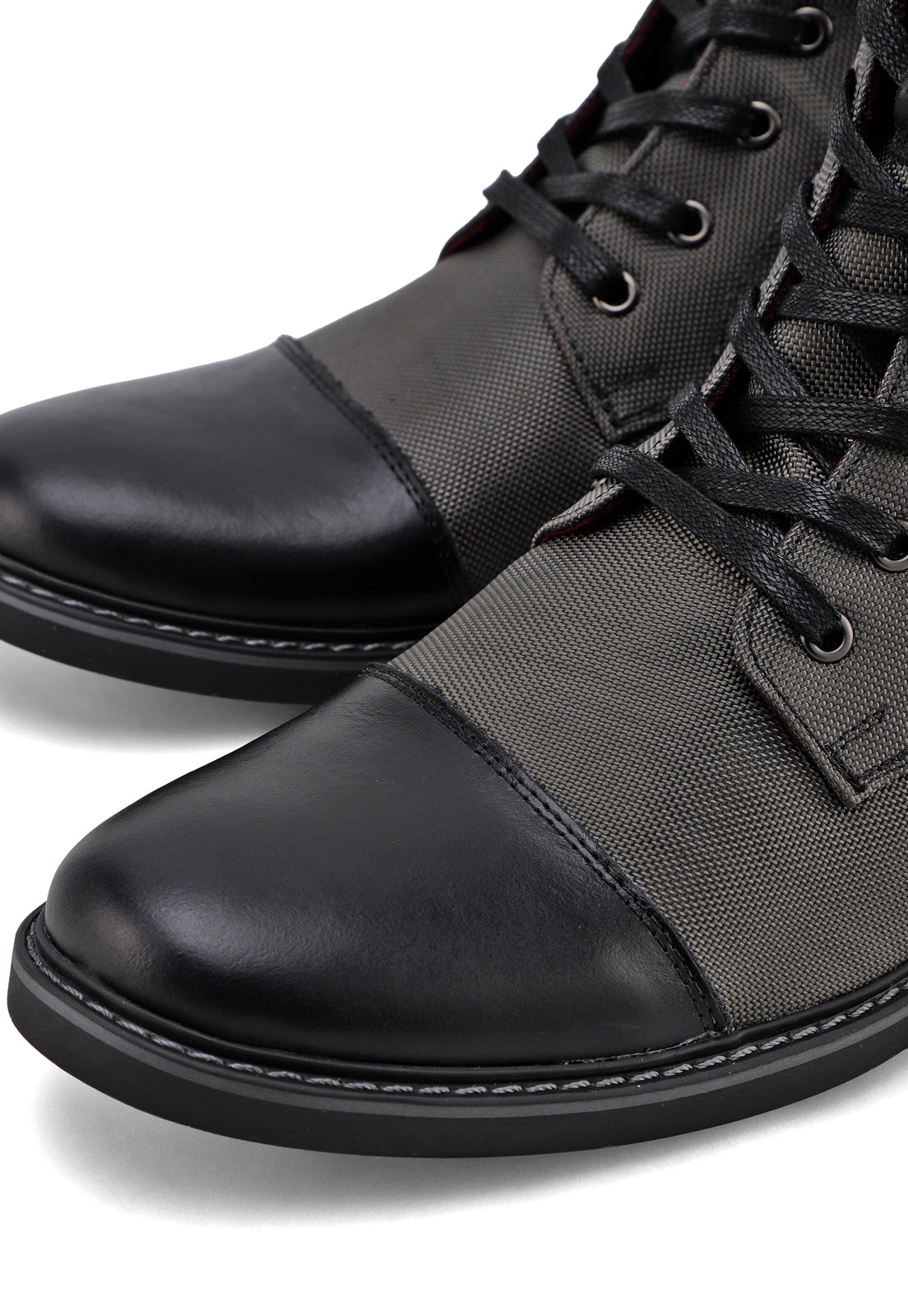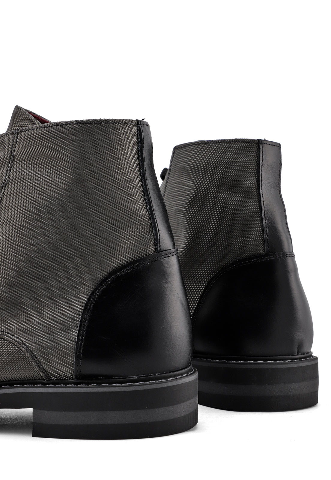 Botas grises en lona y cuero.
