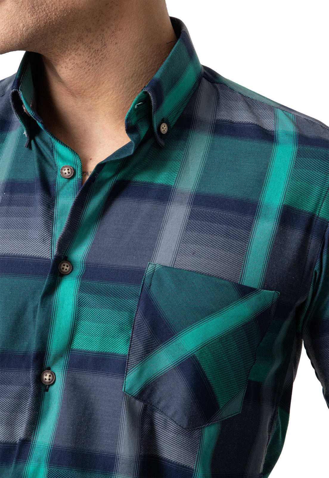 Nuestra camisa leñadora a cuadros verde y azul, es ideal para darle un toque fresco y único a la hora de vestir, se caracteriza por su estampado, cuello camisero ligero, bolsillo de pecho en lado izquierdo y un sistema de cierre con botones. Es la opción adecuada gracias a su estampado. Confeccionado por manos colombianas.
